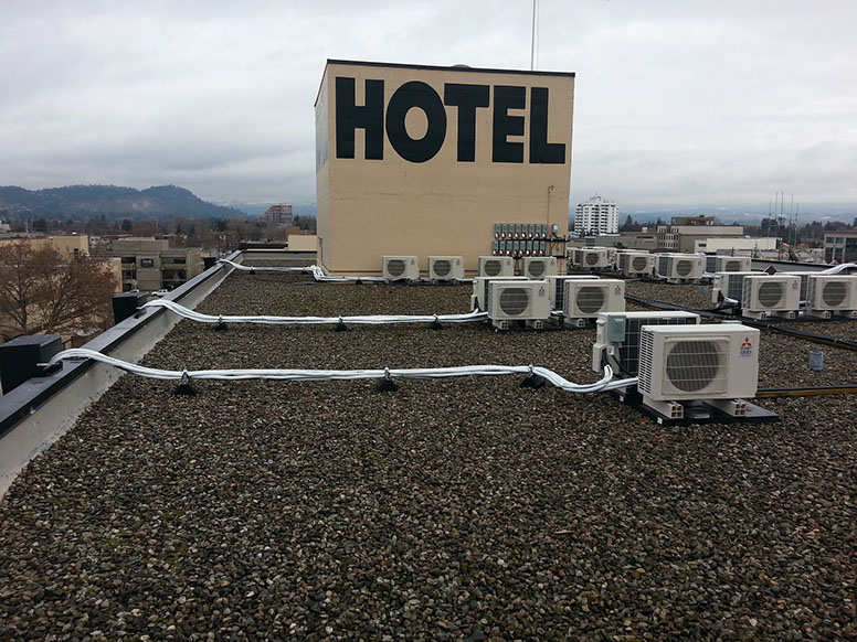 This past fall in efforts to update the heating & cooling systems in our 52 guest rooms, we were introduced to the concept of installing ductless split heating & cooling systems.